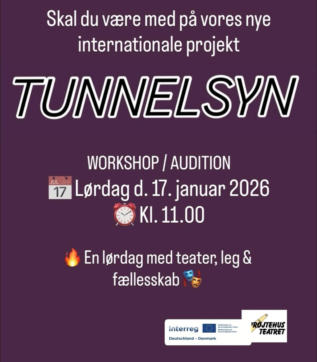 Das deutsch-dänische Theaterprojekt „Tunnelblick“ wird durch das Programm Interreg Deutschland–Danmark und die Europäische Union gefördert. Ziel des Projektes ist es, Menschen aus Deutschland und Dänemark durch ein gemeinsames